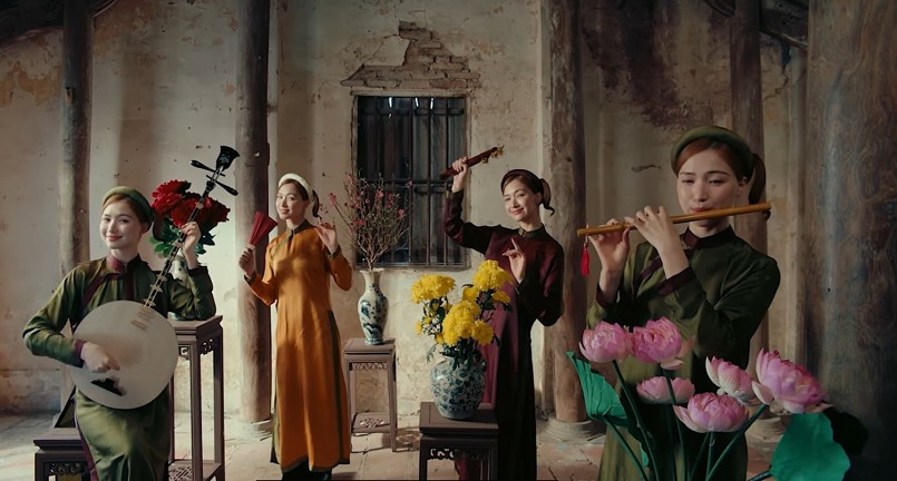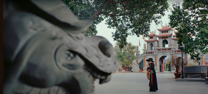 Bởi vậy, ngay mở đầu MV, hình ảnh đoàn người đi trên đê làng, bóng cây cổ thụ sừng sững như "người gác làng" dẫn người ta trở về với nơi sinh thành. Như người xưa vẫn nói, khi những người con thành đạt "vinh quy bái tổ", là trở về với cội nguồn, với nơi dung dưỡng ta có được cuộc sống tươi đẹp như hiện tại. Vì thế, hình ảnh cây cổ thụ sừng sững trên con đường đê như người dẫn lối, đưa đoàn người trẩy hội bước vào không gian văn hóa đậm đà bản sắc dân tộc càng thân thuộc, gần gũi hơn.