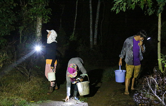 | Ở nhiều nơi, cứ trời tối người dân lại rủ nhau đi săn ốc núi về bán. Đặc biệt, khi vào mùa mưa, ốc ra ăn nhiều, mỗi người có thể bắt được vài chục cân |