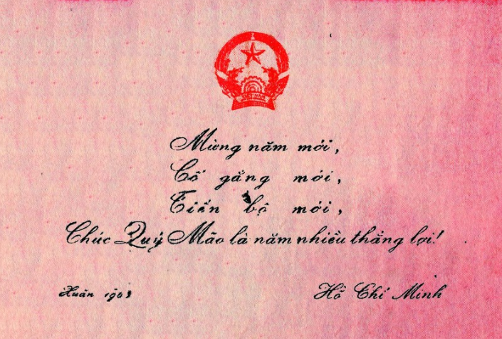 Đây là Thiếp mừng năm mới Xuân Quý Mão 1963 cách đây 60 năm của Chủ tịch Hồ Chí Minh, đăng Báo Nhân Dân số ra ngày 1/1/1963.