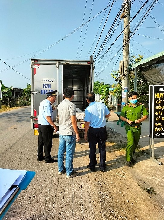 Tiếp tục triển khai, thực hiện kế hoạch cao điểm kiểm tra, kiểm soát thị trường, đấu tranh phòng, chống buôn lậu, gian lận thương mại, hàng giả tháng cuối năm và thời điểm trước, trong, sau tết Nguyên đán Giáp Thìn 2024, vào lúc 09 giờ 30 phút ngày 04/01/2024, trên tuyến đường thuộc ấp Chánh, xã Tân Mỹ, huyện Đức Hòa, Đội QLTT số 1 phối hợp với Đội Cảnh sát Điều tra tội phạm về kinh tế và chức vụ Công an huyện Đức Hòa, kiểm tra phương tiện ô tô tải biển kiểm soát 62H-014.19 do tài xế Nguyễn Lý Phát Huy điều khiển.