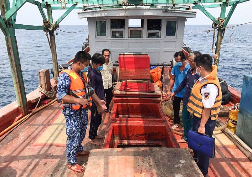 Tàu vỏ gỗ số hiệu KG 94299 TS do ông Đỗ Văn Thành (sinh năm 1973, trú tại Rạch Giá, Kiên Giang) làm thuyền trưởng và 03 thuyền viên. Tại thời điểm kiểm tra, thuyền trưởng khai trên tàu đang vận chuyển trên 100.000 lít dầu DO không có hóa đơn, chứng từ chứng minh nguồn gốc hợp pháp. Thuyền trưởng và thuyền viên không có đủ bằng cấp chứng chỉ chuyên môn theo quy định.