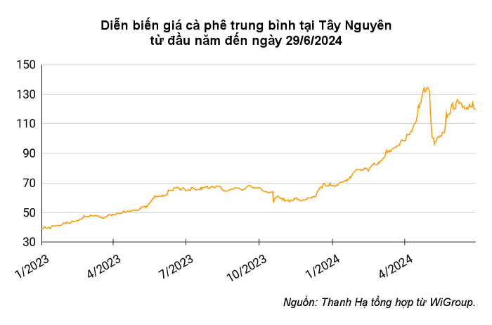 Kết thúc 8 tháng đầu niên vụ 2023-2024 (bắt đầu từ tháng 10/2023 đến tháng 5/2024), Việt Nam đã xuất khẩu gần 1,2 triệu tấn cà phê, tương đương 80% sản lượng của niên vụ hiện tại và giảm 7% so với cùng kỳ niên vụ trước. Nhìn vào số liệu thống kê, lượng hàng tồn trong dân không còn nhiều.