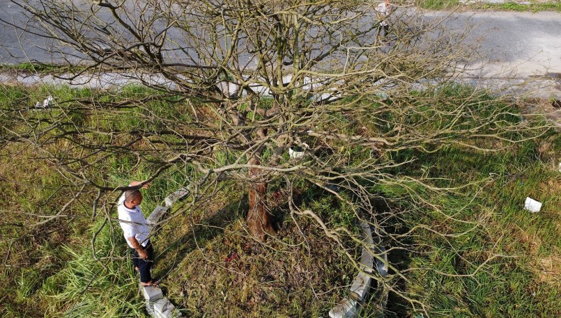 "Cây vừa được lặt lá xong hôm qua, vì cây quá to, thợ bứng hơi sâu nên cây bị suy nhiều, nên tôi lặt lá trễ, thuê 2 người trèo lên cây lặt gần 3 ngày mới xong. Do cây quá to nên tôi để tạm ở phần đất trống của gia đình và phải thuê người chăm sóc và giữ cây 24/24. Mấy ngày trước có người ngã giá 2,6 tỉ rồi mà tôi vẫn còn đắn đo, chắc phải 2,8 tỉ tôi mới bán, vì tiền mình làm ra được chứ kiếm cây mai vàng to vầy hơi bị hiếm", anh Lý nói.