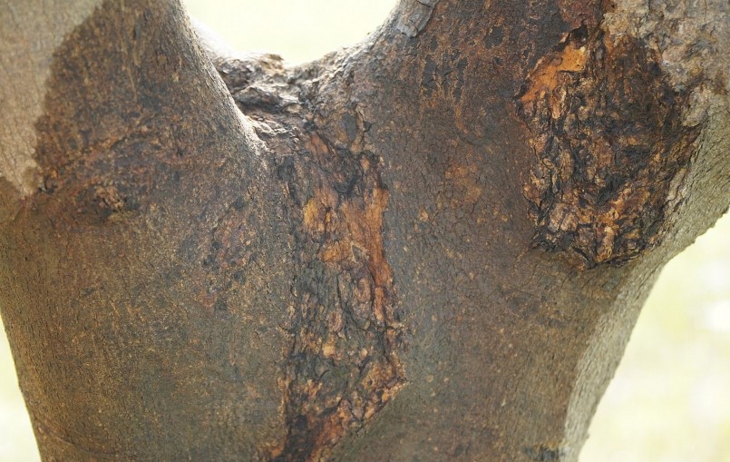 | Cây mai vàng "khủng" đang bắt đầu xù vỏ, biểu hiện của lão mai.(Ảnh Nam Long) |
