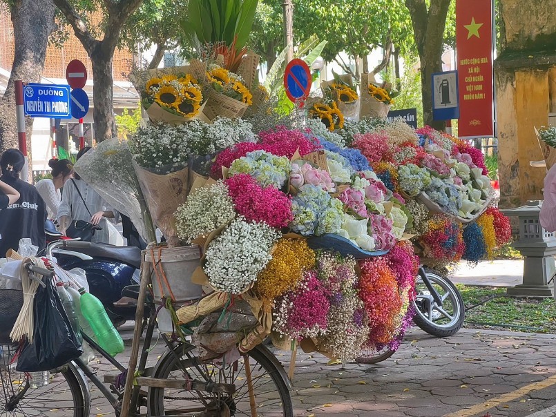 Trao đổi với phóng viên, một chủ xe hoa trên đường Phan Đình Phùng cho biết, ngày nào chị cũng dậy từ 3 - 4h sáng đi ra chợ hoa Quảng Bá mua hoa về bó. Sau đó chở ra điểm bán trên phố Phan Đình Phùng giao với con đường Hoàng Diệu. Các loại hoa cũng được chuẩn bị đa dạng để phục vụ nhu cầu của du khách, từ hoa sen, hoa hướng dương đến hoa cúc,…