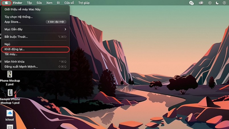 Bước 1: Chọn menu Apple > Chọn Khởi động lại.