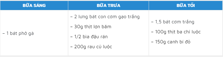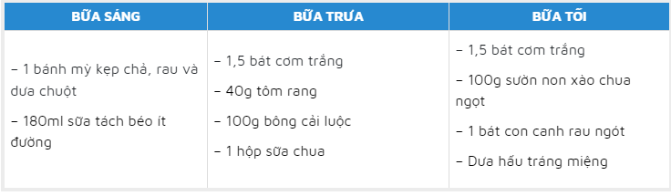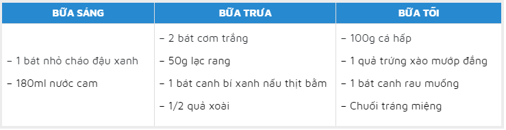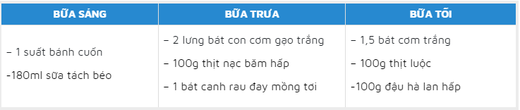 | Thực đơn tham khảo ngày thứ năm cho người bệnh gout |
