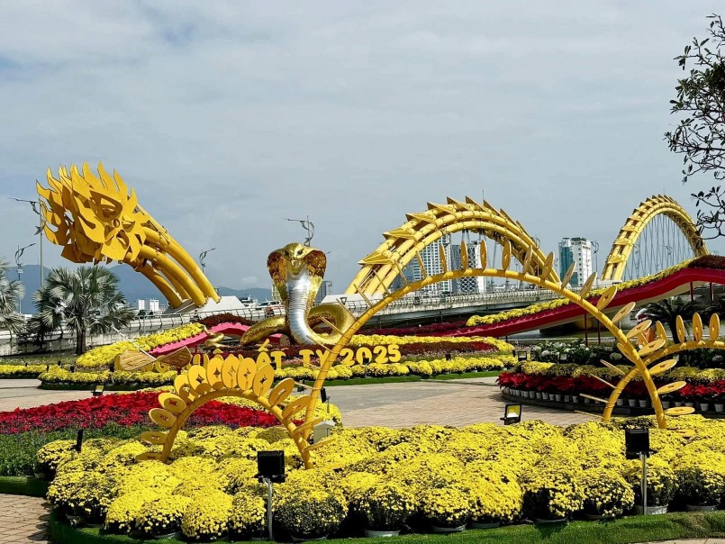 Tại Đà Nẵng, linh vật rắn - chú rắn hổ mang mang màu vàng nổi bật đang “làm mưa làm gió” những ngày qua. Linh vật rắn hổ mang này được đặt ở công viên phía Tây cầu Rồng, có độ cao 5m, phần mang rộng 2,6m, phần thân uốn lượn hàng chục mét. Chú rắn hổ mang với thần thái sinh động, đôi mắt sắc bén và dáng cuộn mình đầy khí thế. Nhiều người nhận xét, linh vật rắn ở Đà Nẵng rất oai phong và có hồn.