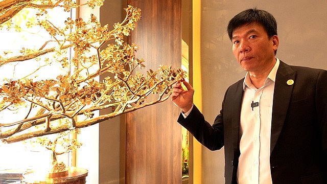 | "Hiện, sản phẩm đã được Tổ chức Kỷ lục Việt Nam xác nhận kỷ lục cây mai đúc đồng mạ vàng lớn nhất Việt Nam", anh nói |