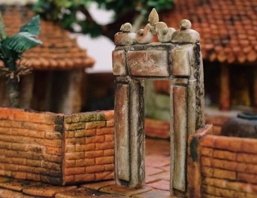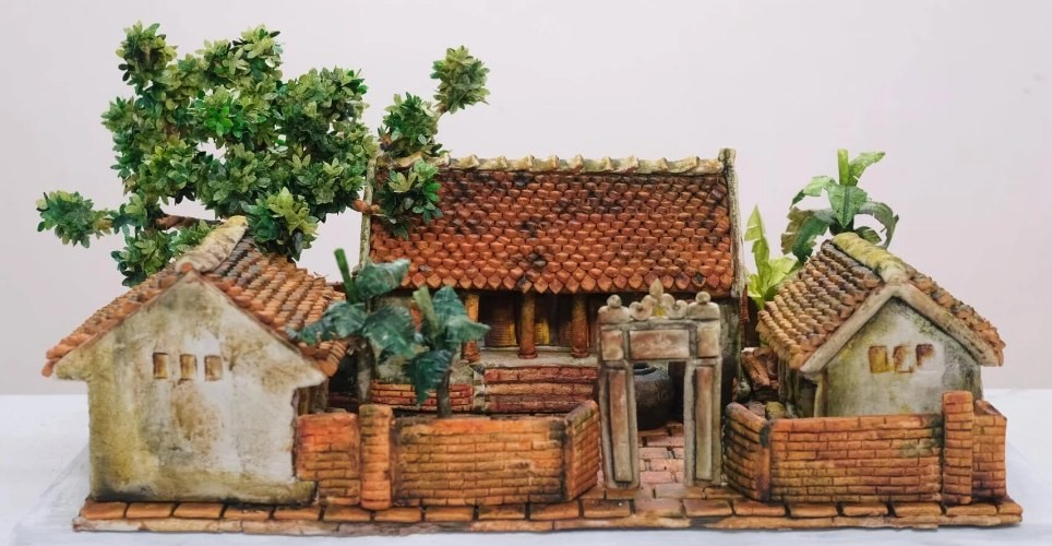 Thoạt nhìn qua, gần như không ai nhận ra đó là bánh trung thu mà tưởng là tác phẩm mỹ thuật tạo hình khung cảnh làng quê Bắc Bộ xưa với nhà bếp cổ, giếng nước, những bức tường rêu phong cổ kính..., chỉ khác là mọi chi tiết của tác phẩm đều ăn được.