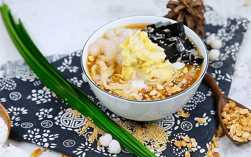 Bước 6: Cho phần mì đã luộc vào bát, thêm topping đã chuẩn bị cùng với cơm sầu riêng xay nhuyễn, chan nước cốt dừa đã nấu vào là có thể thưởng thức ngay.