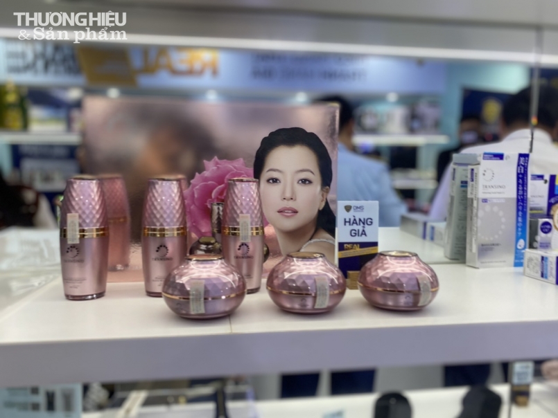| Bộ sản phẩm mỹ phẩm bị làm giả, làm nhái trên thị trường. |