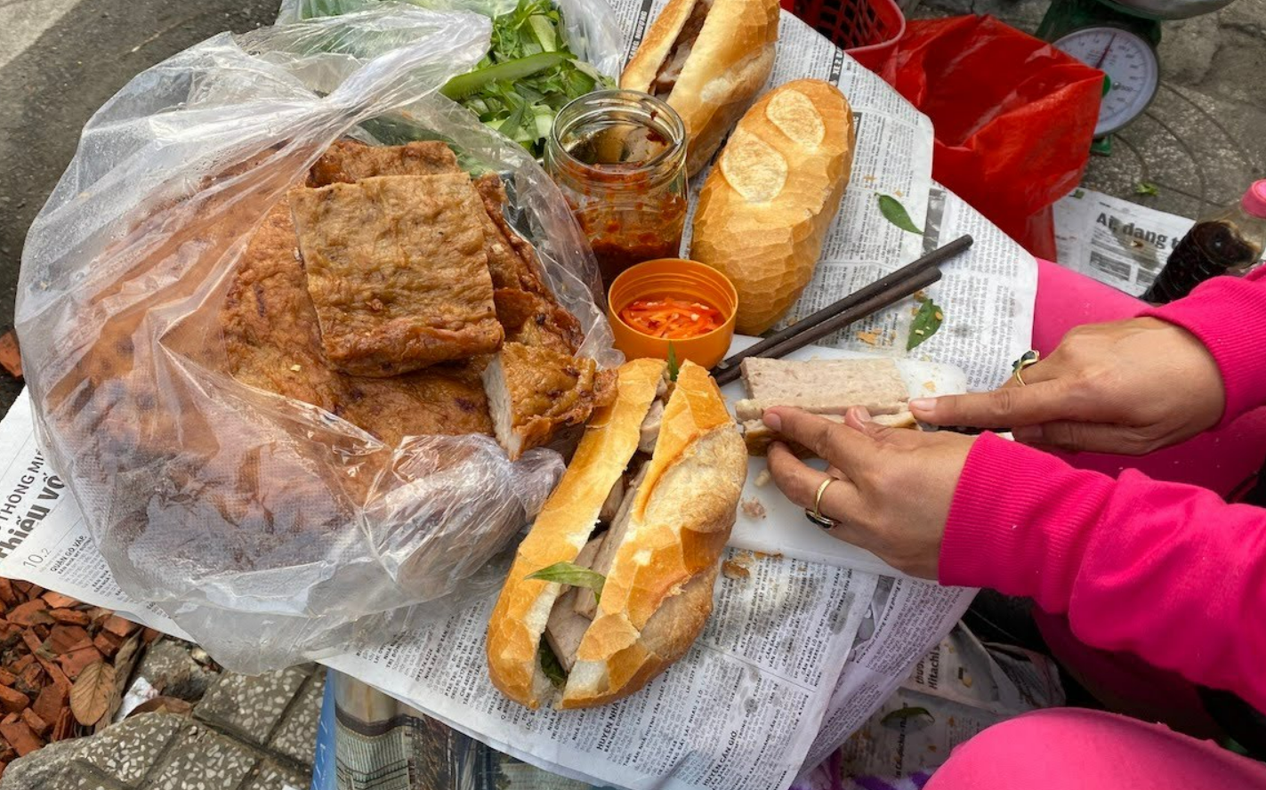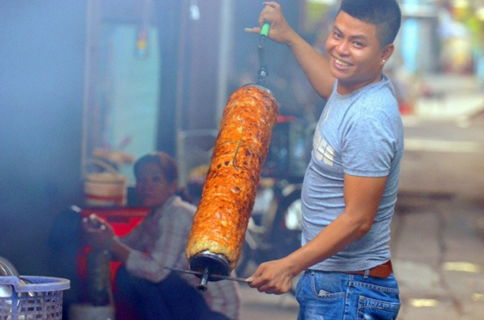 Chả nướng ống tre kẹp cùng bánh mì là ngon nhất. Bánh mì nóng giòn kẹp với chả nướng, thêm ít dưa chuột, rau thơm, tương ớt là ăn ngon tuyệt vời! Bánh mì chả nướng ống tre có giá từ 13.000 - 15.000 đồng/chiếc, là bữa ăn sáng thơm ngon được nhiều người lựa chọn.