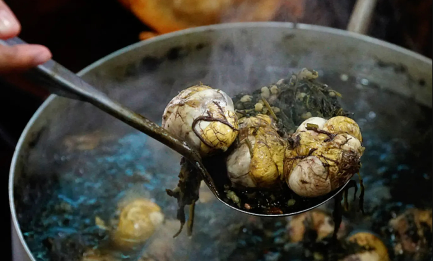 Lang thang ở Hạ Long (Quảng Ninh) với mong muốn tìm vài món ăn vặt lót dạ, bạn có thể nghĩ tới những bát tiết và trứng vịt lộn hầm ngải cứu nóng hổi, thơm lừng. Ban đầu, món ăn này chưa được nhiều người yêu thích, thế nhưng nhờ hương vị đặc biệt, chúng đã dần được ưa chuộng hơn.