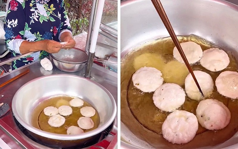 Sau đó, bánh được chiên trong dầu đến khi lớp ngoài giòn giòn, lớp bên trong lại có độ dẻo, dai. Món ăn này được ăn kèm với nước chấm chua ngọt, sợi đu đủ bào nhuyễn và đậu phộng, tạo nên một hương vị thơm ngon và đặc biệt.