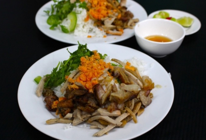 | Cơm âm phủ là món ăn trưa ở Huế được chế biến từ nhiều nguyên liệu quen thuộc |