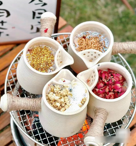 Sau khi rang trà với đường phèn, tiếp đến, sữa sẽ được cho vào và nấu cùng trong nồi đất. Sau đó, các loại thảo mộc như hoa hồng khô, táo đỏ, kỷ tử... được cho vào. Chúng không chỉ mang đến hương vị thơm ngon mà còn rất có lợi cho sức khỏe, đặc biệt là chị em phái đẹp. Theo đó, hoa hồng khô, táo đỏ, kỷ tử đều chứa nhiều chất chống oxy hoá và có lợi cho hệ tiêu hoá, hô hấp hay tim mạch,...