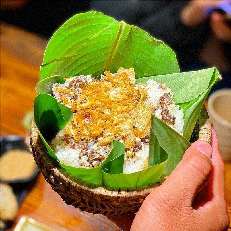 | Xôi trứng kiến là một sáng tạo ẩm thực độc đáo của người dân vùng cao phía Bắc. |