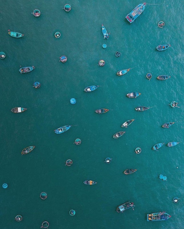 Màu biển xanh cát vàng, màu xanh, màu đỏ của những con thuyền, màu của những tấm bạt dựng tạm trên bờ biển cũng đủ để làm nên những bức hình rộn ràng sức sống. Đó là khung cảnh nên thơ của ngôi làng chài nguyên sơ mà yên bình sẽ trở thành phông nền sống ảo không app nào tô vẽ được.
