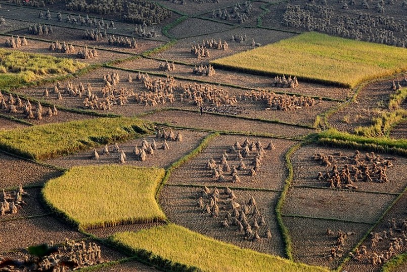 Khác biệt với cách thu hoạch lúa bằng máy móc hiện đại, lúa nếp Ong nơi đây được người dân thu hái theo phương pháp cổ truyền. Họ sẽ dùng một dụng cụ có lưỡi sắc để cắt từng bông lúa, sau đó mới gom lại và buộc thành từng bó nhỏ mang về.