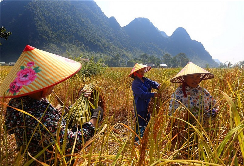 Mùa thu hoạch lúa nếp Ong - đặc sản miền biên viễn Trùng Khánh
