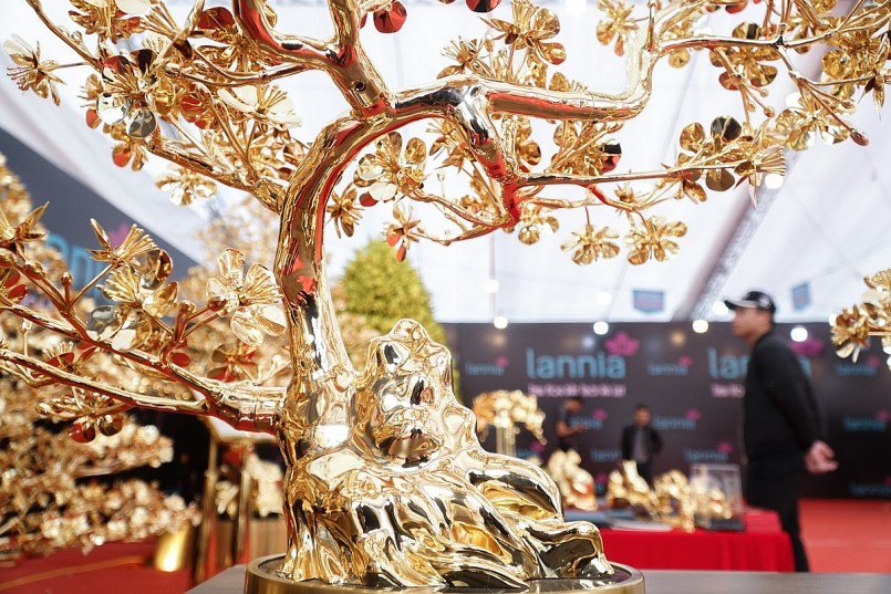 Cây mai vàng có chiều cao 3m, được làm bằng đồng nguyên khối và mạ vàng 24k. Hiện cây mai này đang được trưng bày để phục vụ người dân Hà Nội chiêm ngưỡng trong dịp Tết Nguyên đán Quý Mão 2023.