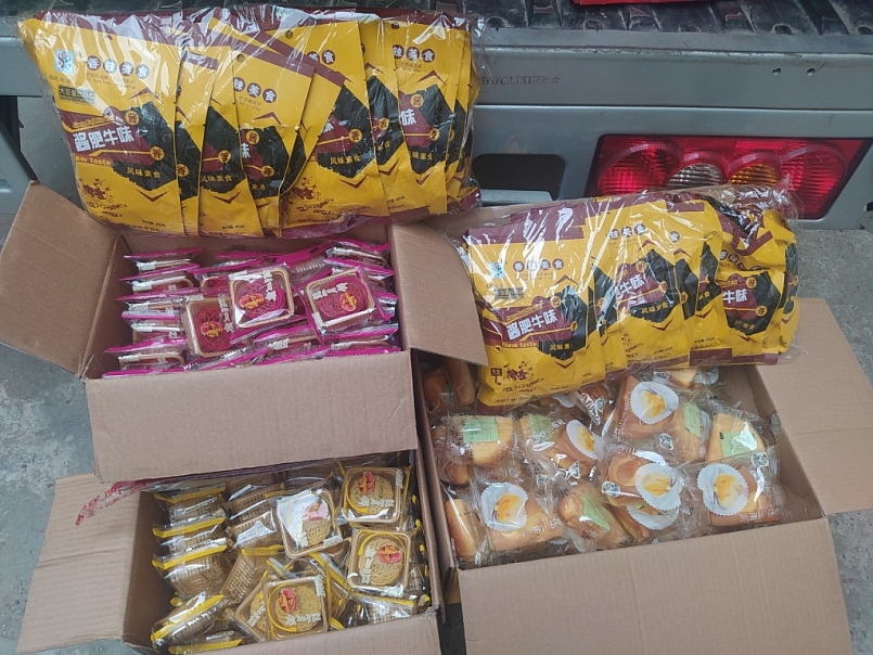 Quá trình khám phương tiện vận tải, Đoàn kiểm tra khám phát hiện bên trong các thùng cát tông có gần 2.500 gói bánh trung thu, chả cay các loại. Toàn bộ số hàng hóa trên có xuất xứ nước ngoài, trên bao bì sản phẩm thể hiện “Made in China”.