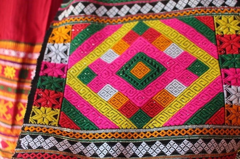 Các mẫu mã được lấy cảm hứng từ cuộc sống và cách điệu tạo nên những hoa văn sặc sỡ, giàu tính sáng tạo thông qua những đường nét trên các trang phục.