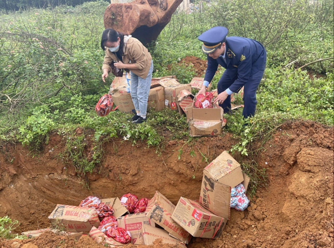 Nghệ An: Tiêu hủy 5.336 gói xúc xích, chân gà chảy nhớt, bốc mùi