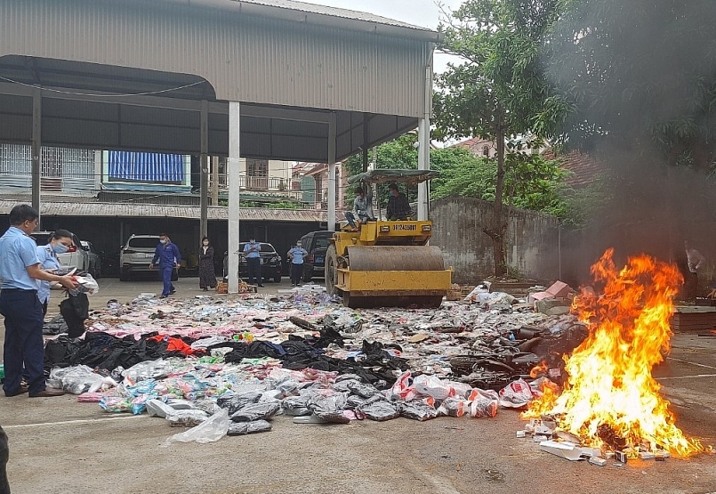 Nghệ An tiến hành tiêu hủy gần 44.000 đơn vị hàng hóa vi phạm hành chính bị tịch thu 6 tháng đầu năm 2021. |