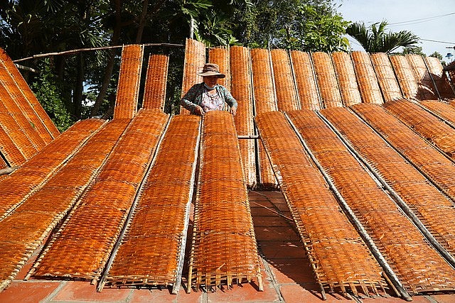 Nghề làm bánh tráng thủ công tại ấp Cây Xoài được công nhận là nghề truyền thống