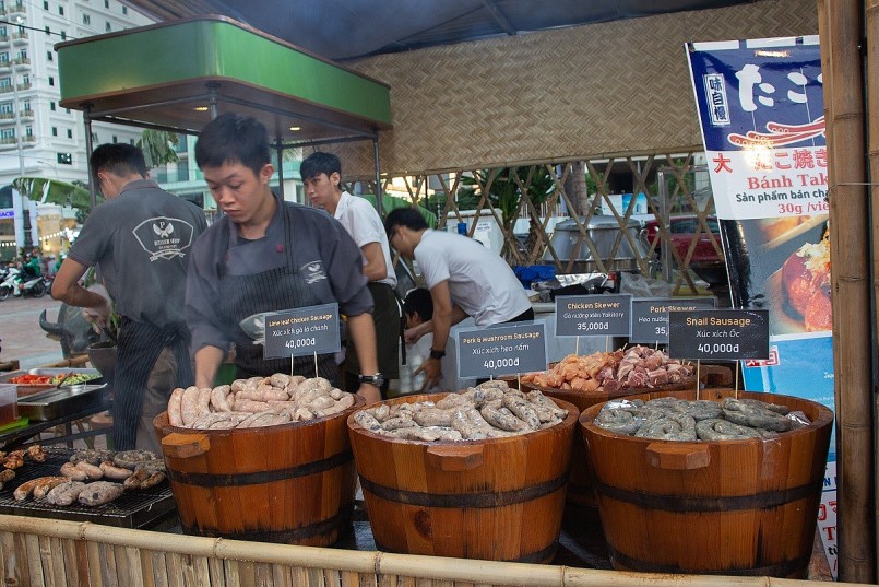| Nhiều món ăn hấp dẫn được bày bán để phục vụ người dân và du khách. |
