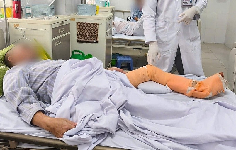 Anh N.V.T (41 tuổi, Thanh Hóa) suýt mất một chân do viêm mô bào nặng, hậu quả của nhiễm trùng Vibrio vulnificus (vi khuẩn ăn thịt người).