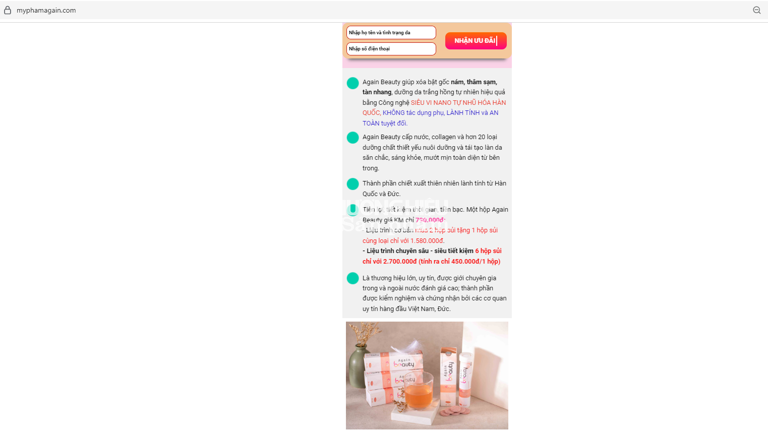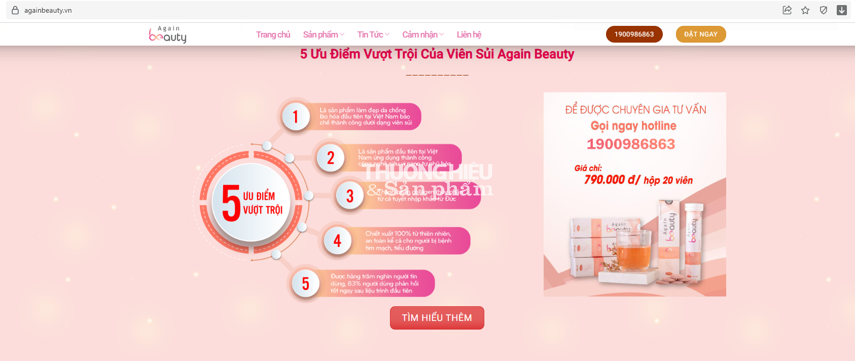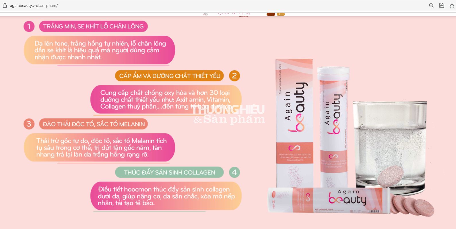| Sản phẩm Viên sủi chống lão hóa Again Beauty được quảng cáo tại đường link https://myphamagain.com/ |