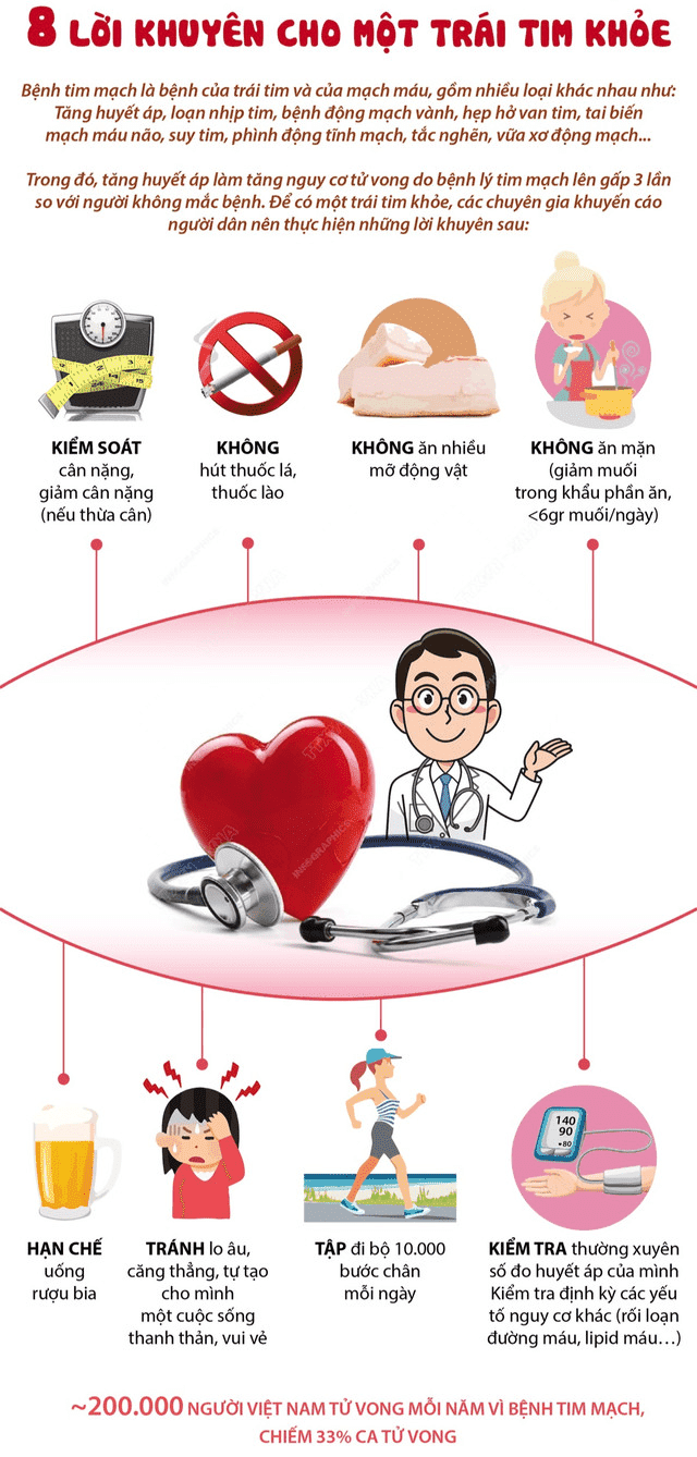 Để giảm nguy cơ mắc các bệnh lý về tim mạch, chuyên gia tim mạch khuyến cáo người dân cần: