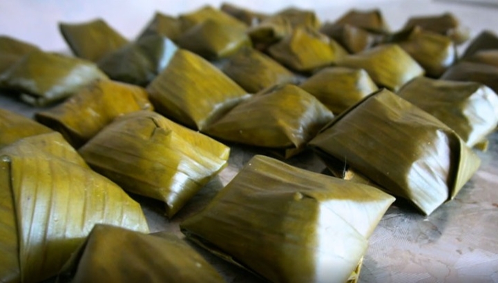 Thoạt nhìn, nguyên liệu làm món này giống như bánh chưng, bánh tét gồm gạo nếp, đậu xanh. Ngoài ra còn có lá chuối, đường và đặc biệt không thể thiếu rau ngải cứu. Chính thứ rau này mang đến mùi vị khác lạ và đặc biệt cho bánh.