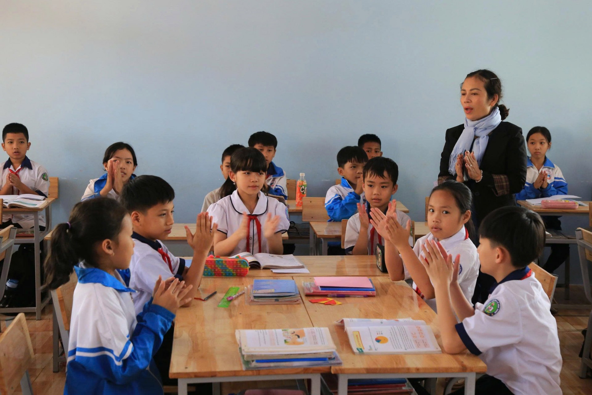 Cô và trò Trường Tiểu học Lê Đình Chinh vui vẻ trong giờ dạy học bởi cơ sở vật chất được đầu tư đầy đủ. |