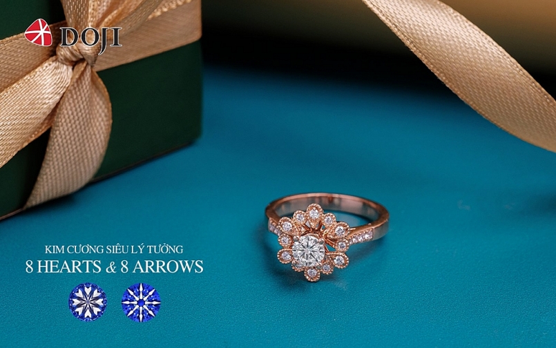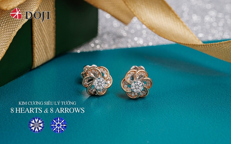 Được chế tác từ những viên kim cương chủ siêu lý tưởng và hiếm có, những thiết kế trang sức gắn kim cương siêu lý tưởng 8 Hearts & 8 Arrows luôn là món quà thời thượng để dành tặng phái đẹp. DOJI giúp phụ nữ hiện thực hóa giấc mơ kim cương khi đưa ra mức giá chỉ từ 15 triệu đồng/ sản phẩm.