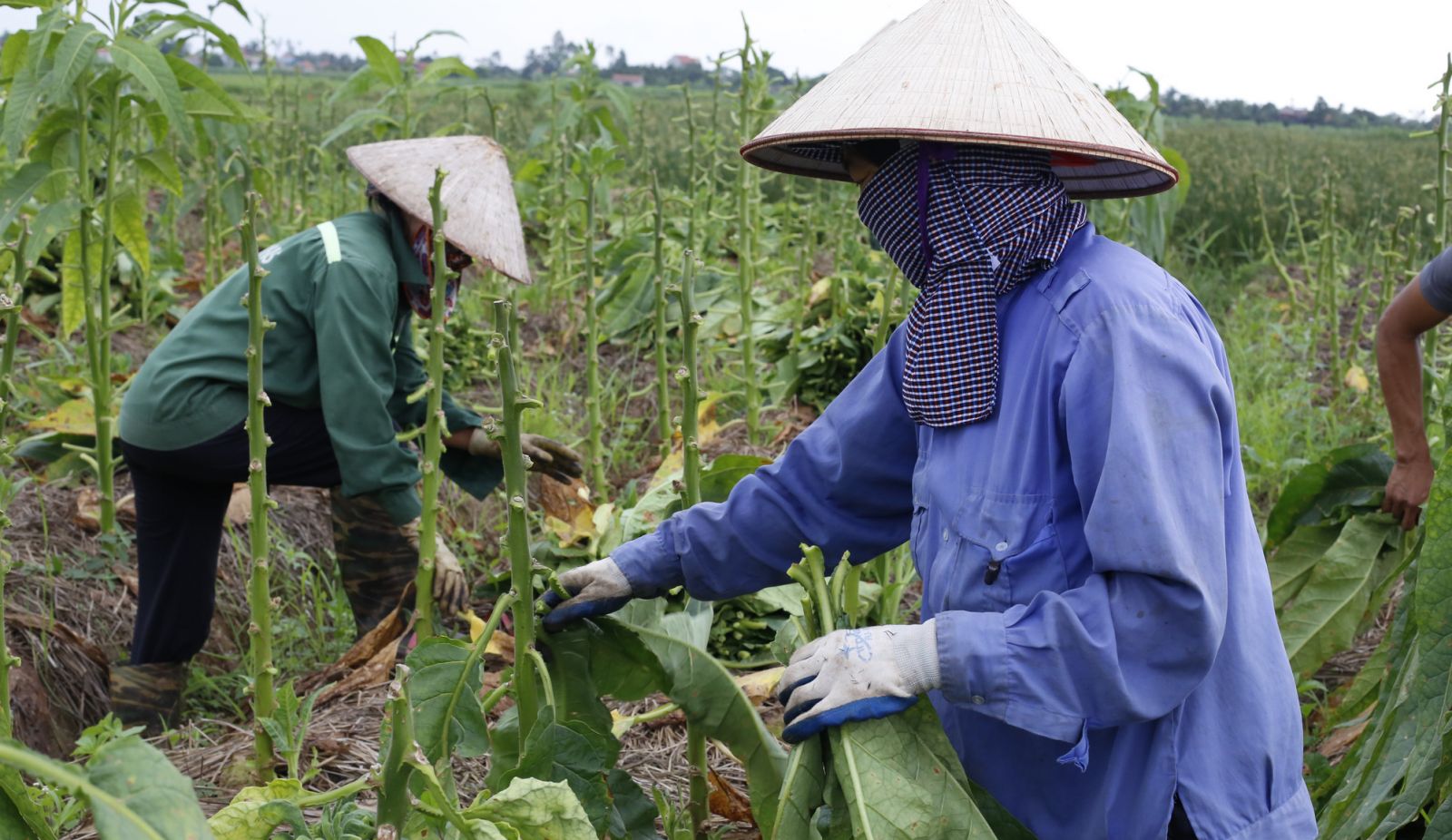 Người dân đang thu hoạch cây Thuốc Lào.