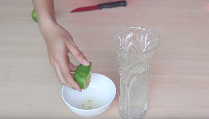 Mỗi lần thay nước cho hoa thì bạn hãy pha vài muỗng nước chanh hoặc giấm táo vào. Nước chanh làm tăng độ axit trong nước nên rất hiệu quả trong việc giúp giữ hoa lâu tàn.