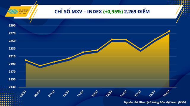 Số liệu từ Sở Giao dịch hàng hóa Việt Nam (MXV) cho thấy, mặc dù sắc xanh đỏ đan xen trên bảng giá hàng hóa nguyên liệu thế giới trong ngày giao dịch hôm qua, tuy nhiên, lực mua rất mạnh trên nhóm nông sản đã kéo chỉ số MXV-Index đóng cửa tiếp tục tăng phiên thứ 2 liên tiếp, với mức tăng 0,95% lên 2.269 điểm.