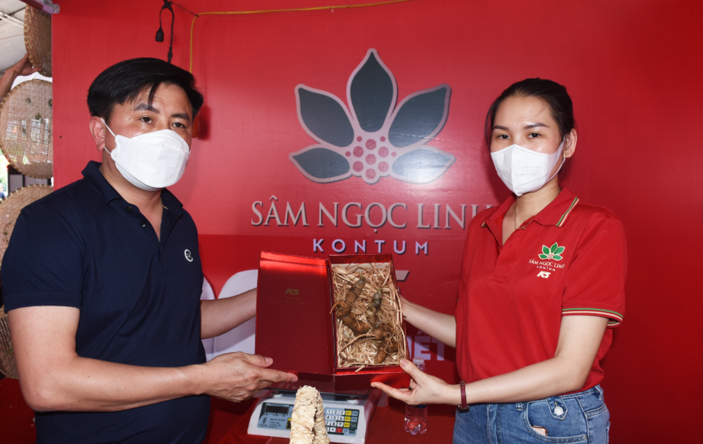| Du khách giao dịch mua thành công củ sâm Ngọc Linh của Công ty Cổ phần Sâm Ngọc Linh Kon Tum |