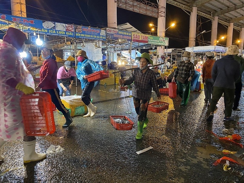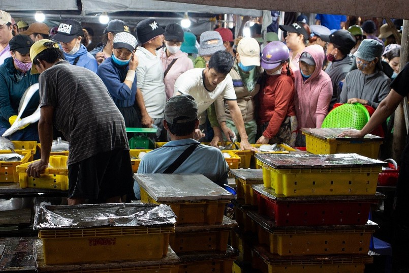 Nhộn nhịp phiên chợ sớm tại cảng cá lớn nhất miền Trung