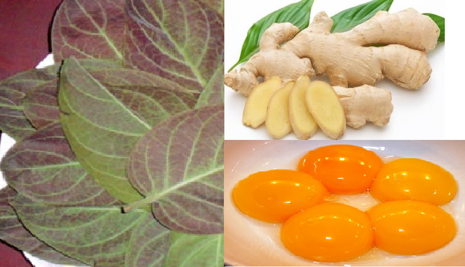 Nguyên liệu: Lá mơ tươi (1 nắm nhỏ), gừng tươi, lòng đỏ trứng gà (1 quả)