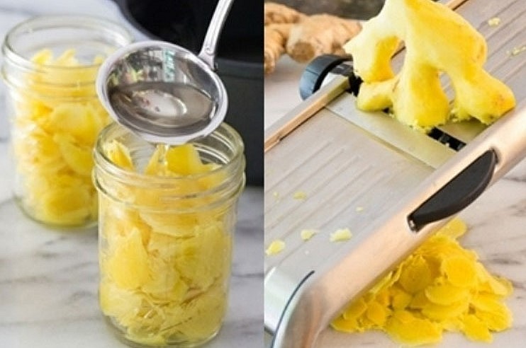 Tiếp đến, bạn chế biến tùy ý bằng cách đập dập củ gừng, thái mỏng hoặc để nguyên cả củ rồi cho vào hũ thủy tinh, sau đó đổ rượu vào và đậy kín nắp (tỷ lệ một kg gừng cho 2 lít rượu trắng).