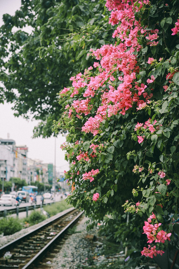 Nhắc đến hoa giấy phải kể ngay đến góc chụp “cực phẩm” đầu đường Phương Liệt, ngã rẽ Tô Hiến Thành giao Bùi Thị Xuân. Hoa giấy bao phủ toàn bộ nóc nhà phủ xuống đường ray, còn ngay gần khu tập thể cũ. Muốn có một bức ảnh vintage với một Hà Nội cổ xưa thì ra đây là quá chuẩn!