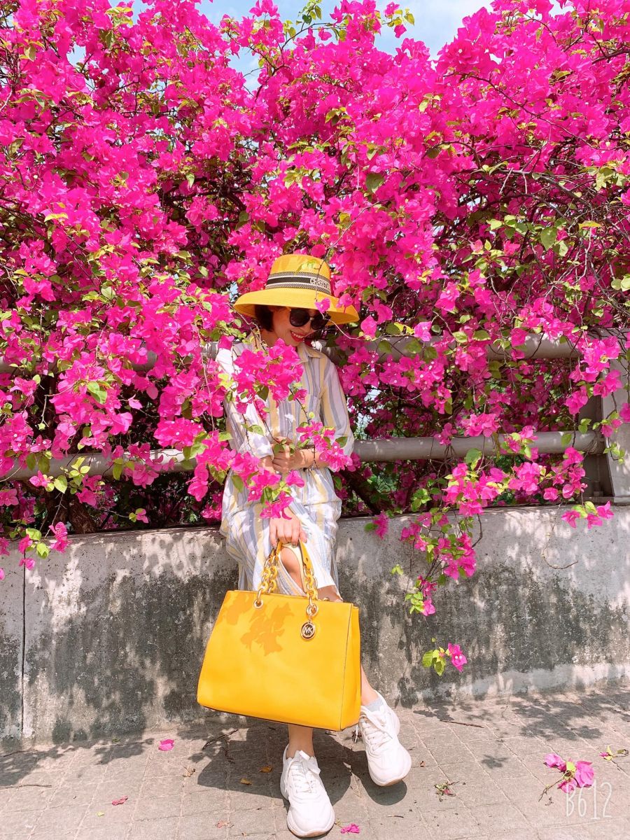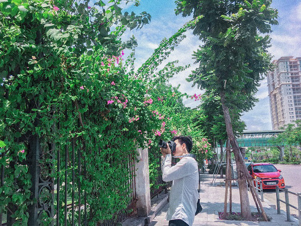 Giàn hoa giấy mọc xung quanh hàng rào công viên Thống Nhất, vậy nên dân tình có thể chụp ngay ngoài bờ tường, ven đường Lê Duẩn, hoặc vào trực tiếp bên trong công viên cũng được.