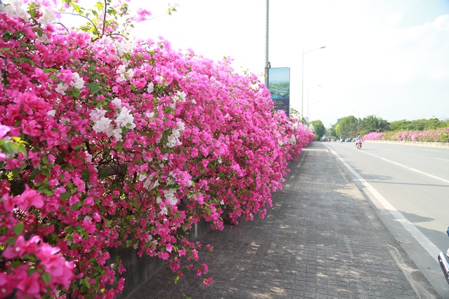 Những cây hoa giấy ở đây mọc rậm rạp, tuy nhiên có công nhân môi trường cắt tỉa thường xuyên nên được tạo dáng gọn gàng.