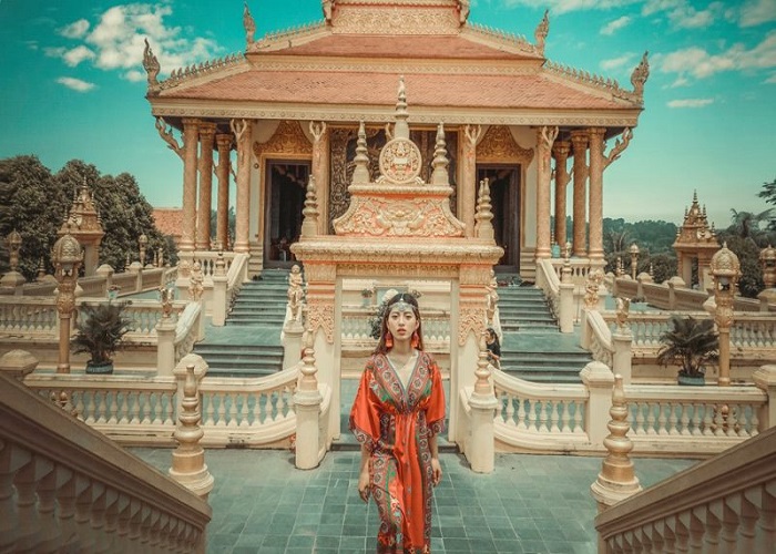 Ngôi chùa theo kiến trúc Khơ - Me cổ này là điểm nổi bật nhất.