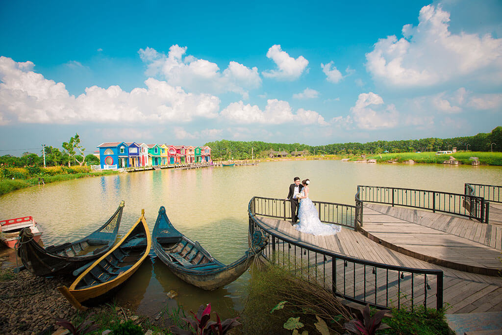 Với diện tích lên đến gần 5,5ha, Smiley Vlile có rất nhiều những hậu cảnh đẹp từ trong nhà cho đến ngoài trời, hội tụ đầy đủ những bối cảnh, kiến trúc từ cổ kính đến hiện đại, từ tự nhiên đến nhân tạo, tái hiện lại tinh hoa các nền kiến trúc tinh tế trên toàn thế giới, từ sự tinh tế của nền văn minh châu Âu và La Mã cận đại cho đến sự đồ sộ của nền kiến trúc châu Á-cái nôi văn minh thế giới. Tất cả sự phong phú và đặc sắc ấy đã không khỏi quyến rũ những vị khách ghé thăm, những cặp đôi sắp cưới bị hút hồn vào không gian vô cùng thú vị của nơi này. Bởi thế nên ngày càng có nhiều những cặp đôi chọn Smiley Ville làm nơi chứng nhân cho tình yêu của họ trong những bộ ảnh cưới đẹp hút hồn.
